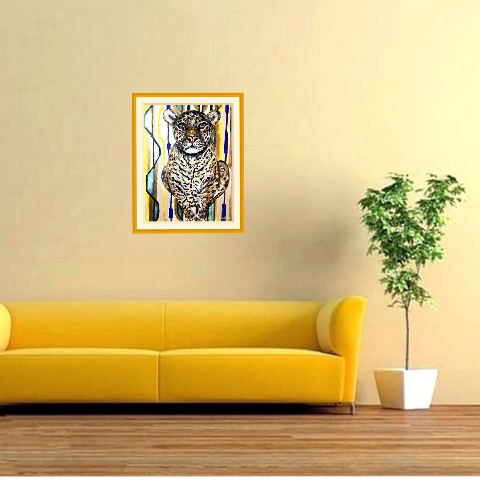 This stunning 3D acrylic painting features a charming baby leopard set against an elegant Art Deco background. Created using modeling gel and specialized acrylic paints, the artwork has a rich texture and depth, making the leopard appear almost lifelike. Subtle glow-in-the-dark accents add a magical touch, bringing the painting to life in dim lighting.