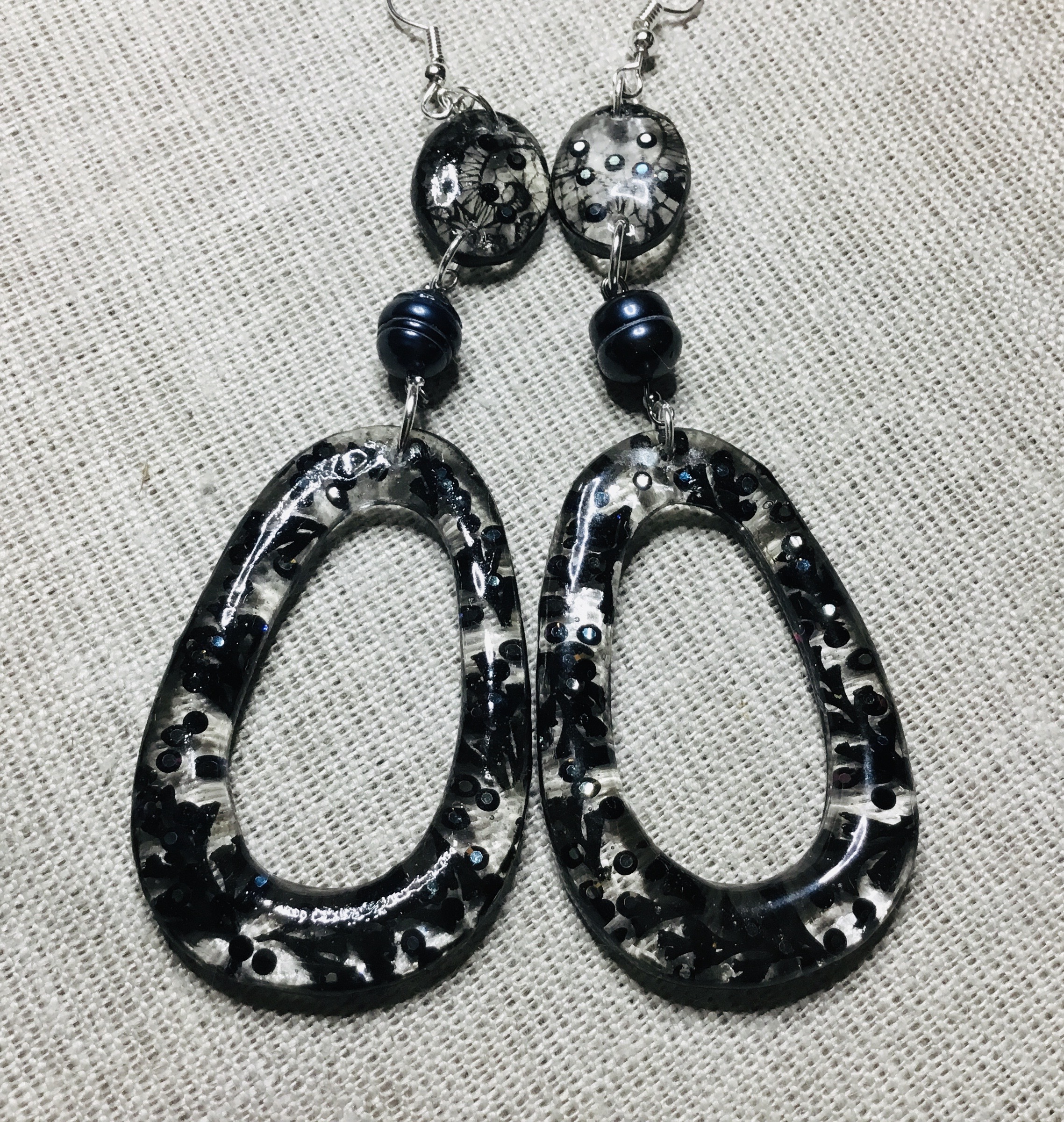 Black flower & black river pearl jewelry set,real dry pressed coloured black flower,black moss,earrings and necklace jewelry set,unique gift