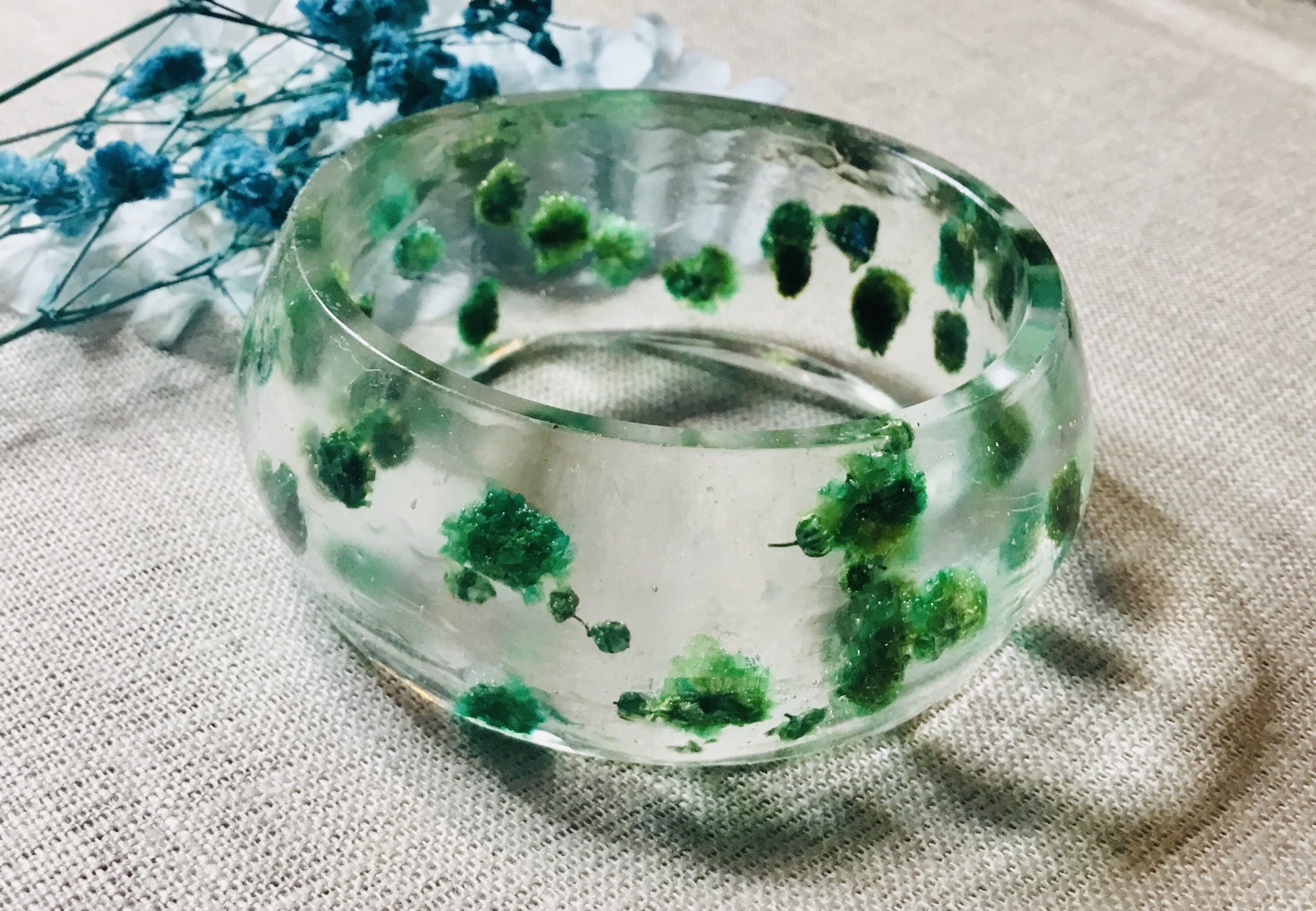 This bangle is made with real dry baby breath flowers coloured in green blue,makes a perfect gift for her for any occasion.