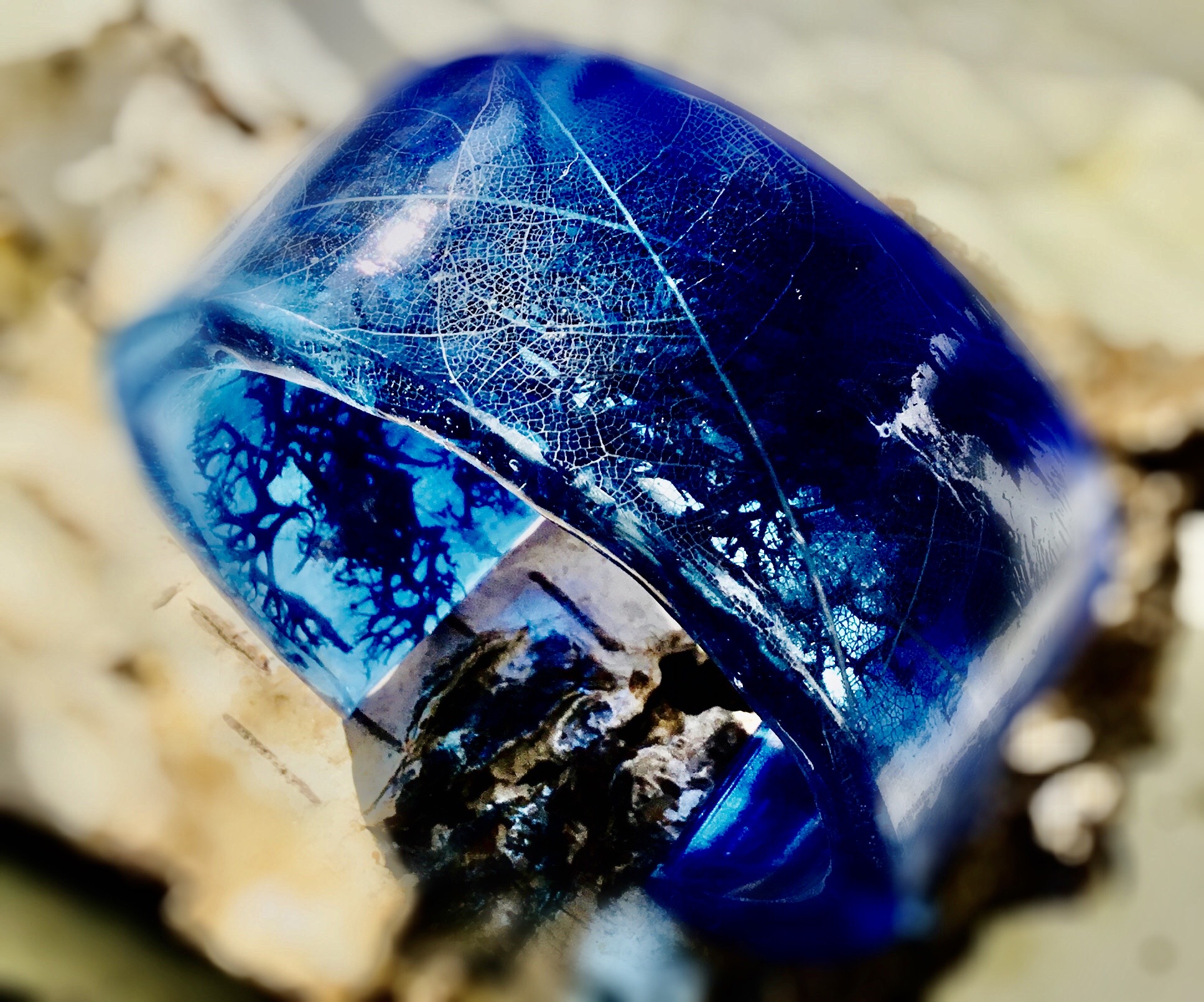 Blue Moss & White Leaf Resin Bangle – Handmade Botanical Jewelry
