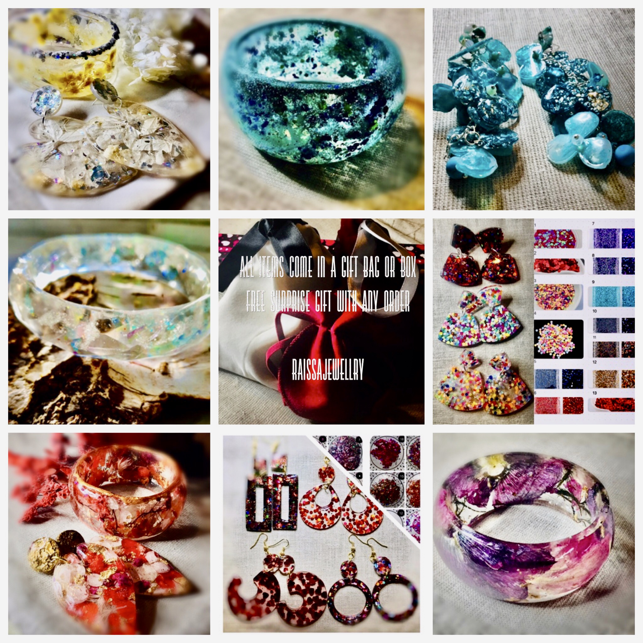 Design: The set typically includes a pendant necklace and matching earrings. The flowers’ natural hues are complemented by the resin’s clarity, resulting in a timeless and elegant aesthetic.