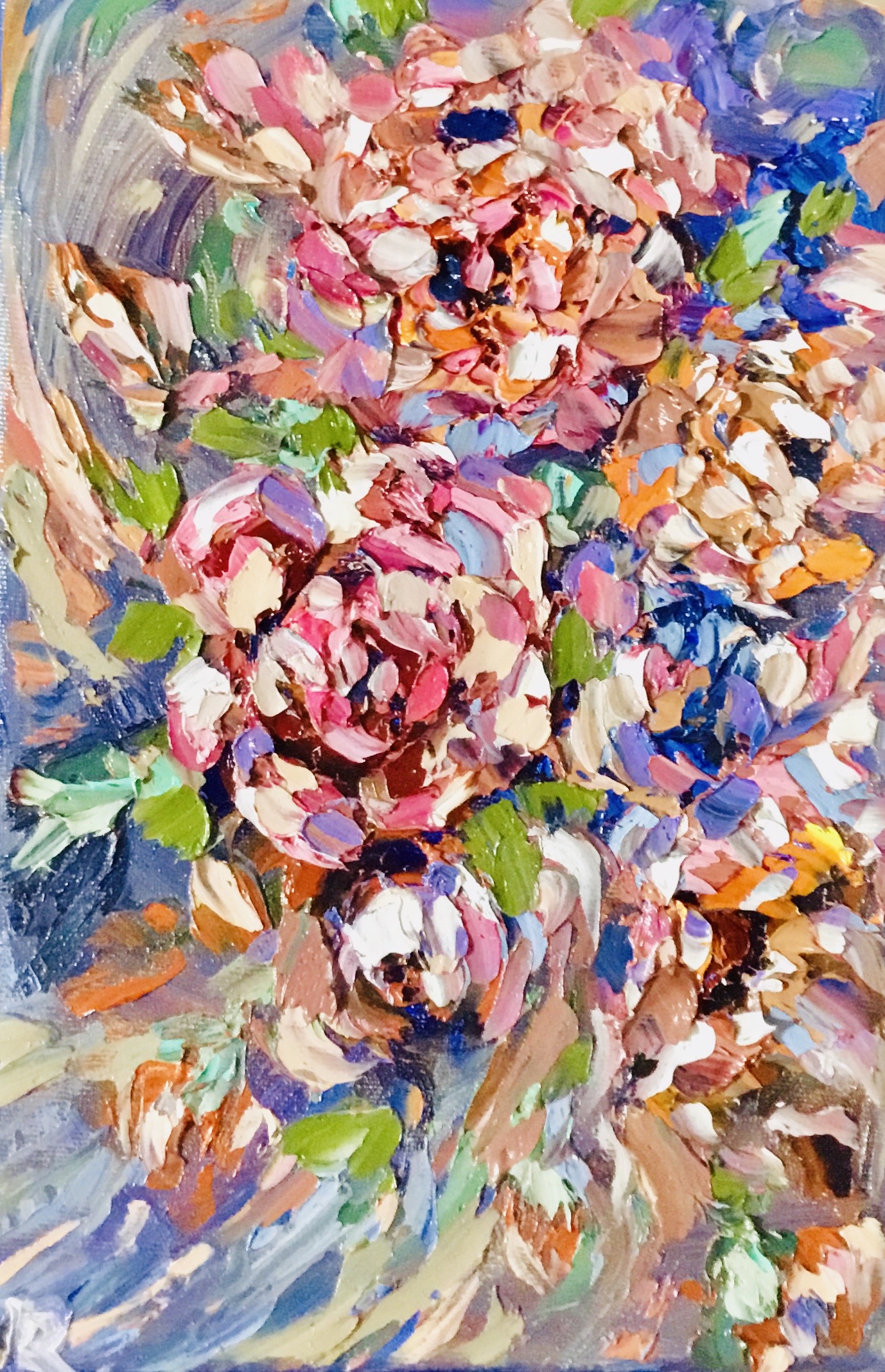 Colorful Flowers Impasto Painting – Original Textured Floral Artwork on 3D Canvas.