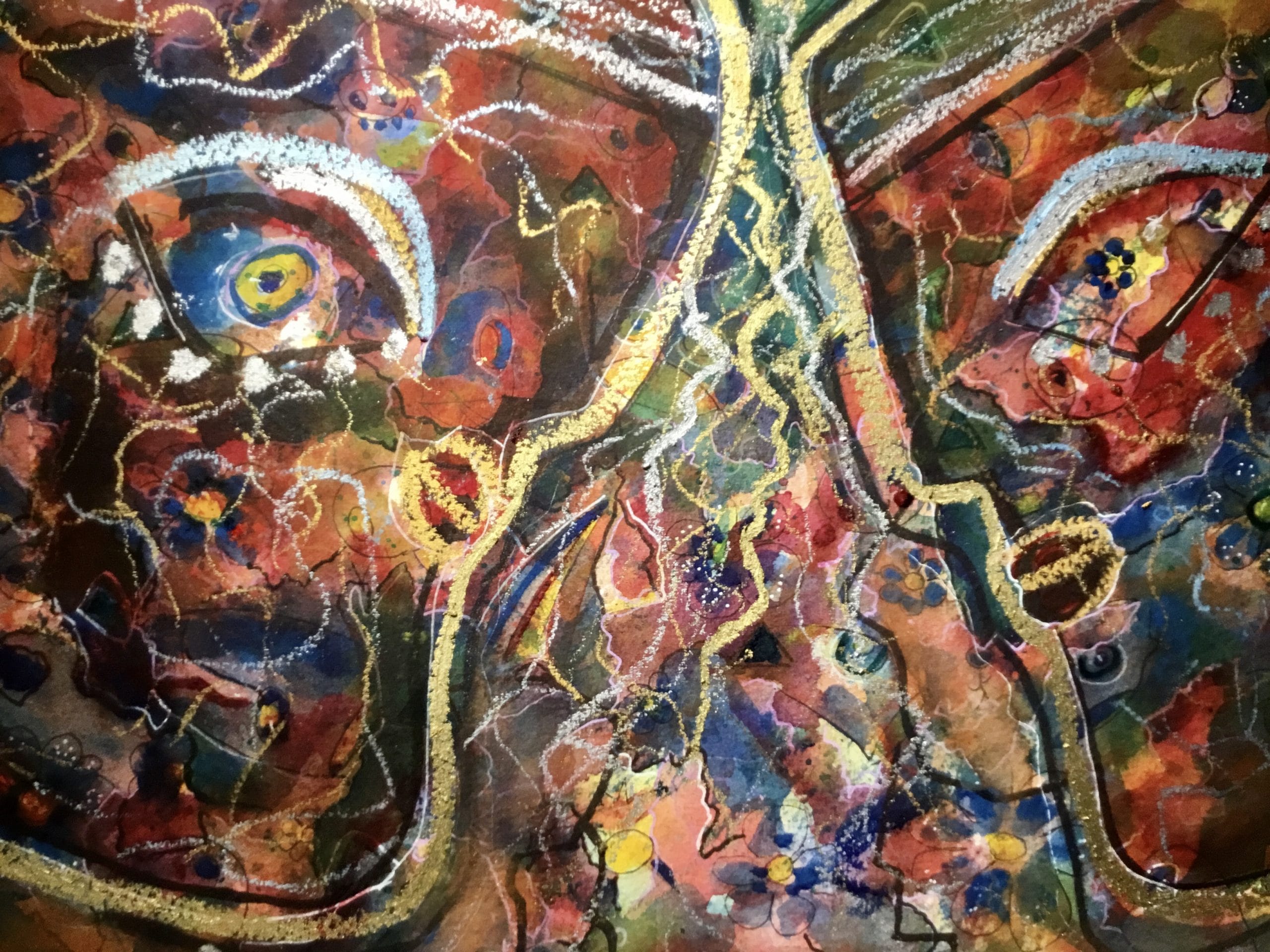 Materials used:Daniel Smith watercolours,oil pastel,calligraphy and posca pens,400 g Saunders Waterford watercolour paper.