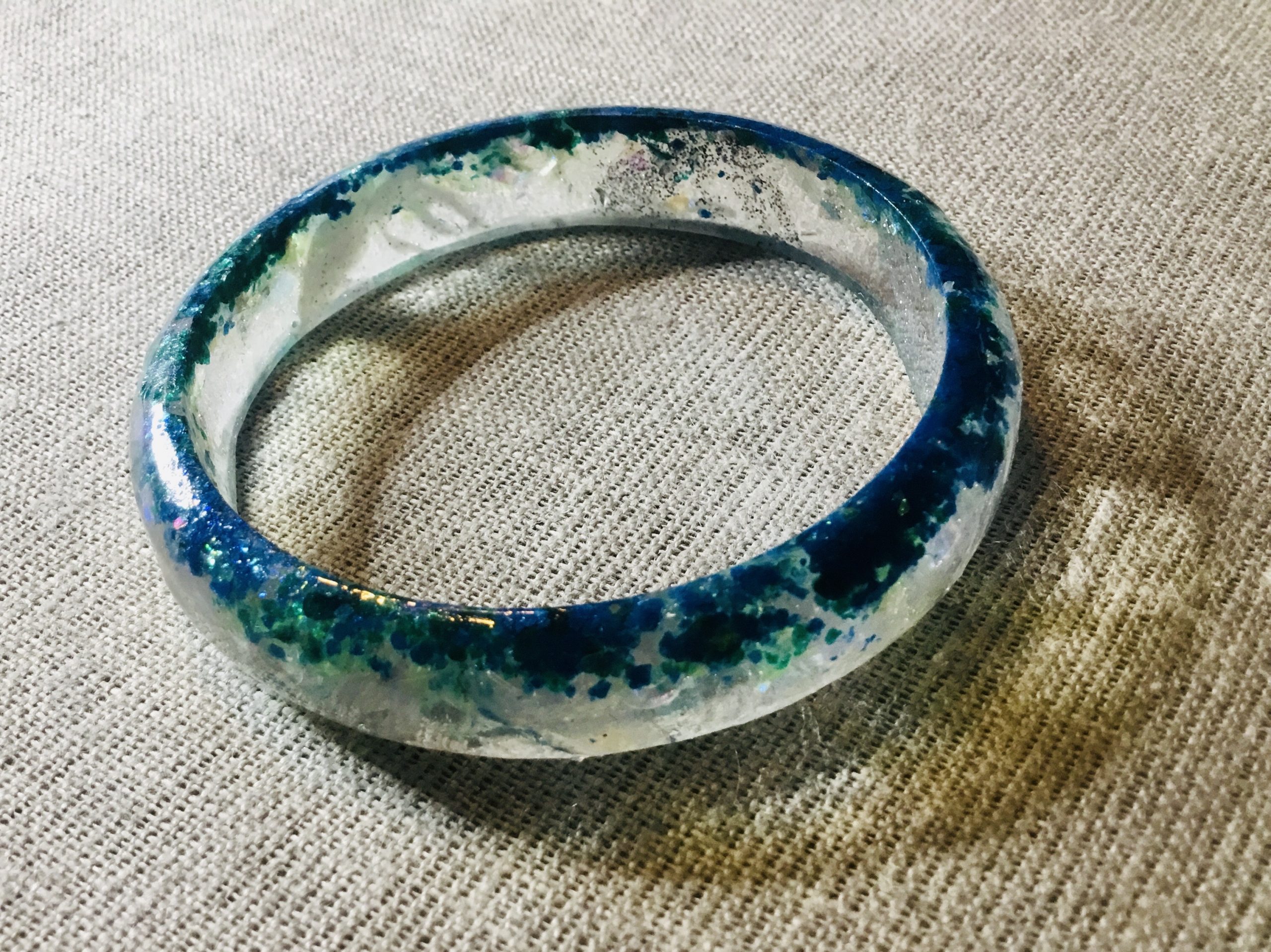 Fish bangle,sparkling fish resin bangle,unique handmade fantasy bracelet,transparent blue bangle,women jewellery,customised gifts for her.