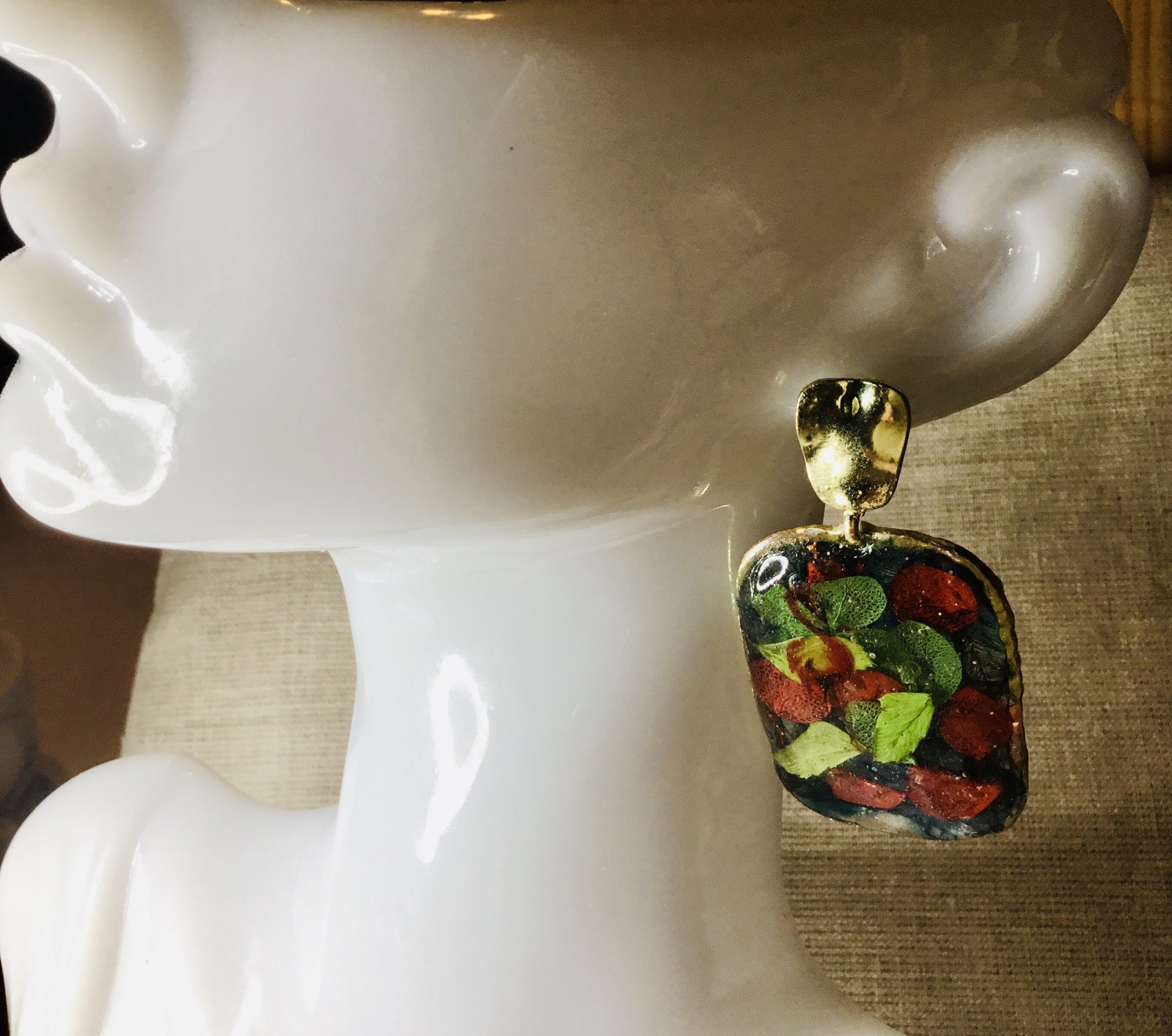 Flamingo earrings,colourful confetti & real pressed flowers earrings,long drop fantasy earrings,unique handmade gift for her,women jewellery.