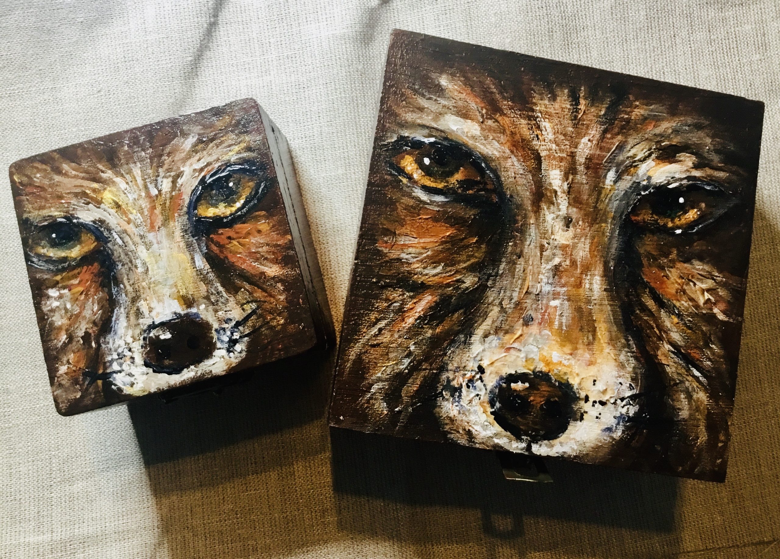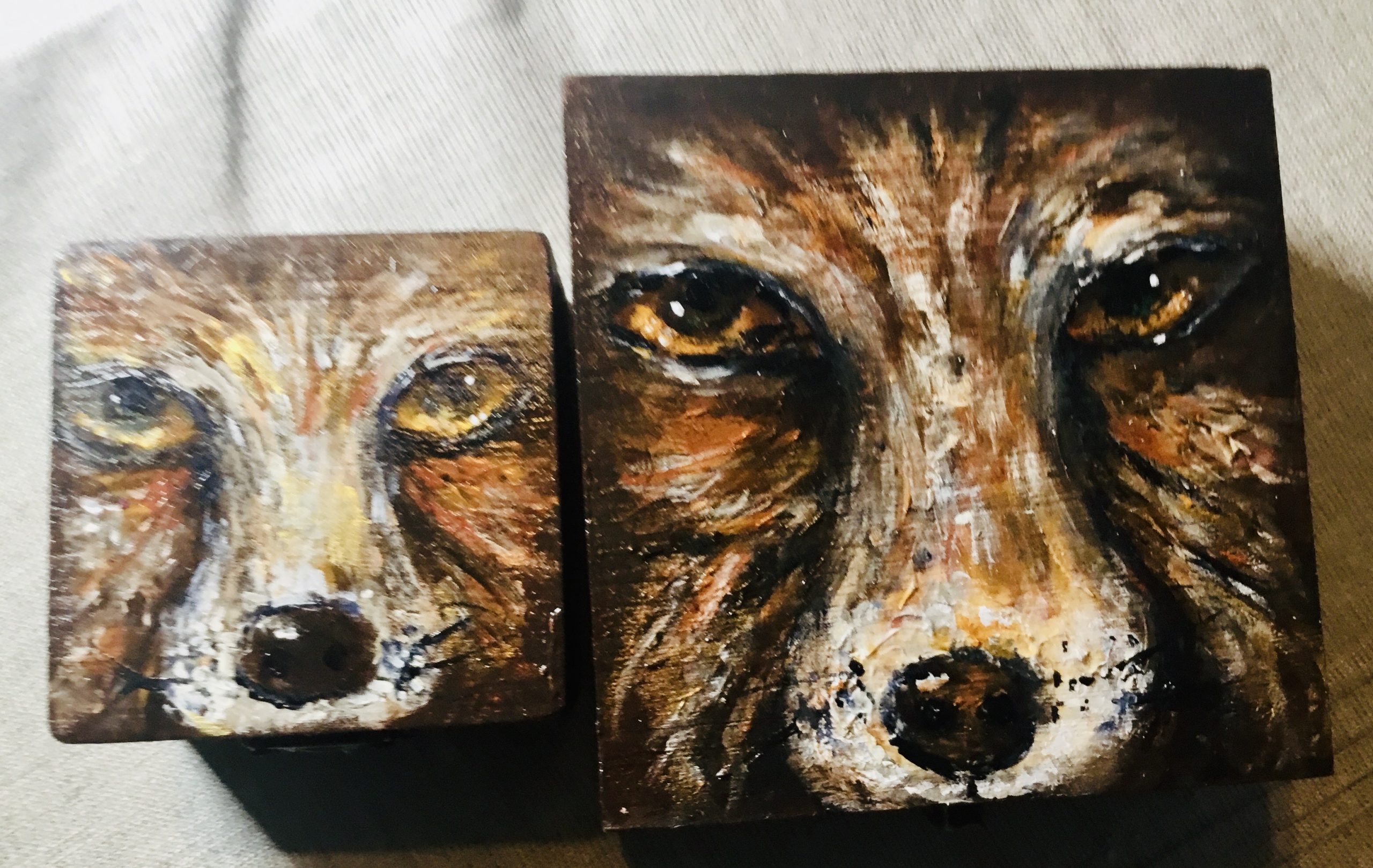 This set of 2 jewellery wooden boxes with fox faces