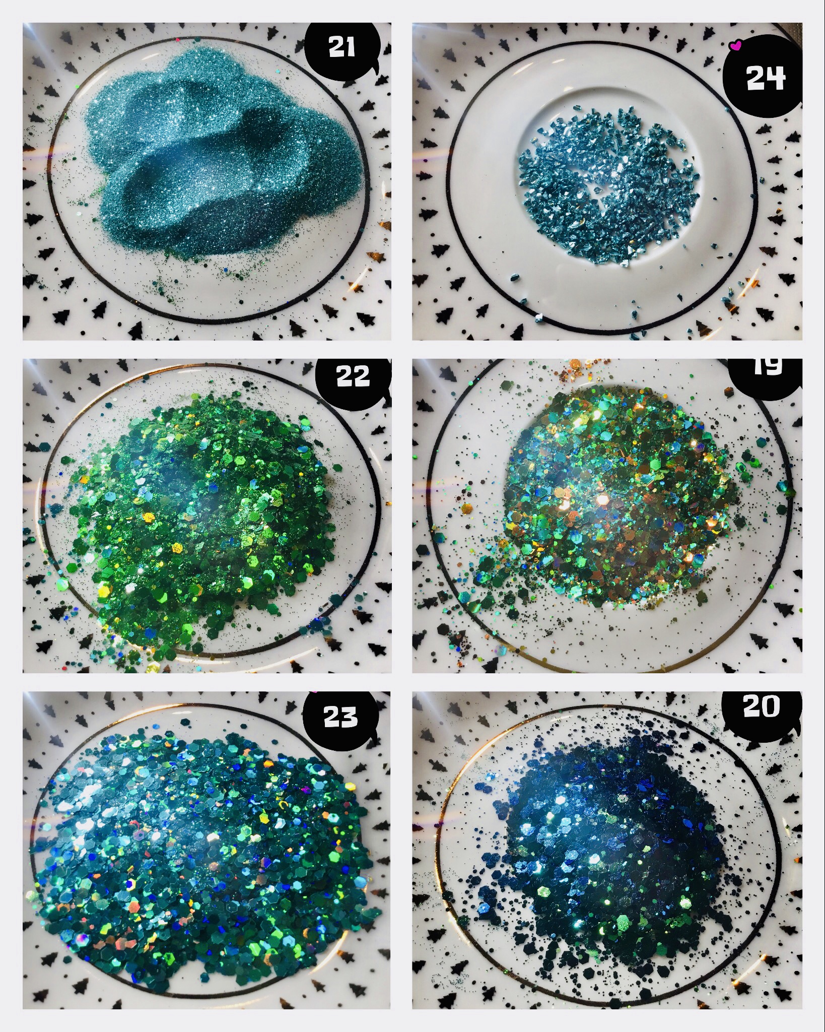 This set can be made with a different green glitter,please see the options in the photo and contact me with what number glitter you prefer.