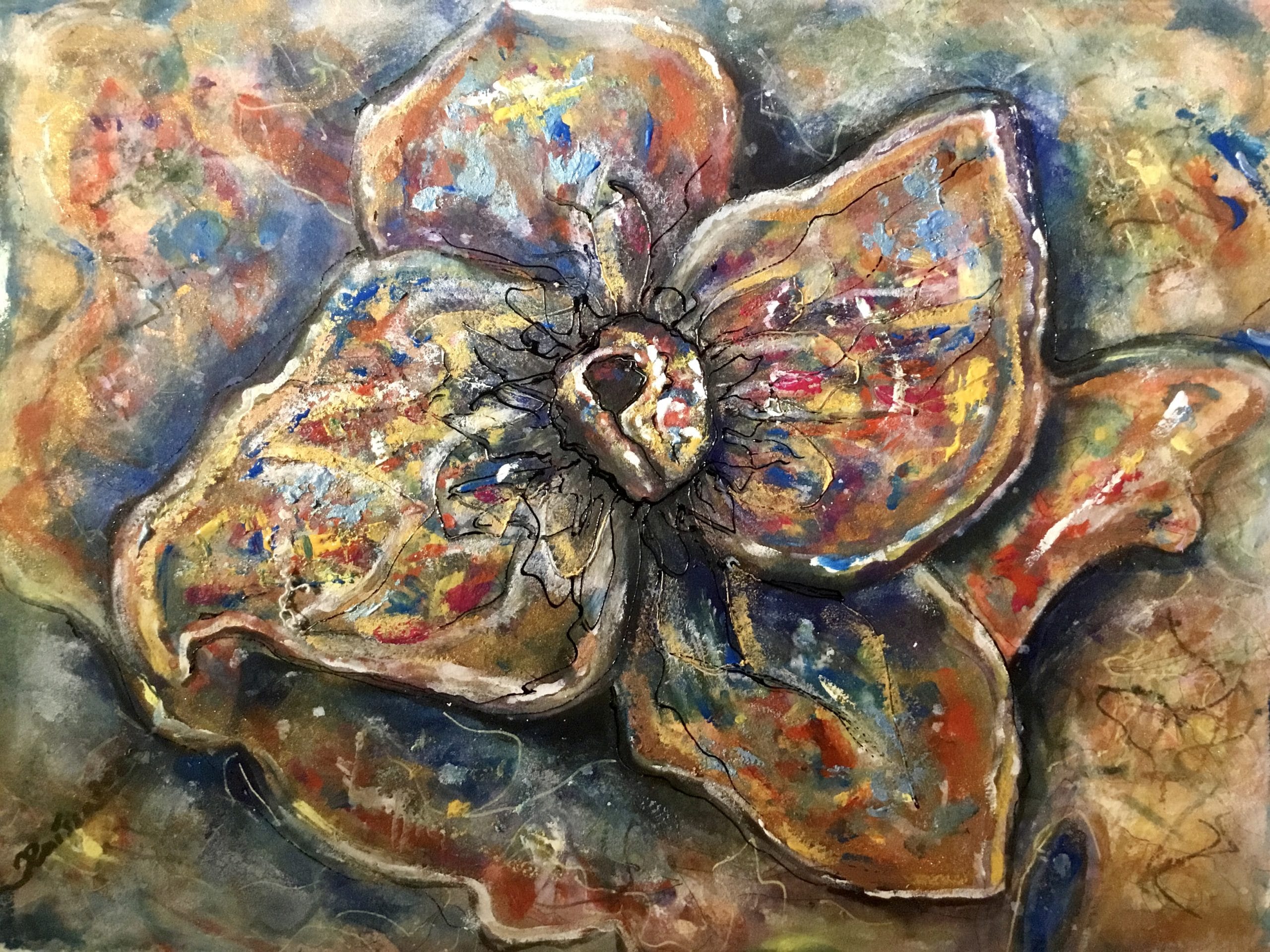Fantasy flower watercolour mix media painting on watercolour 350 g paper,size 30/40 sm,12/16 inches,not framed.