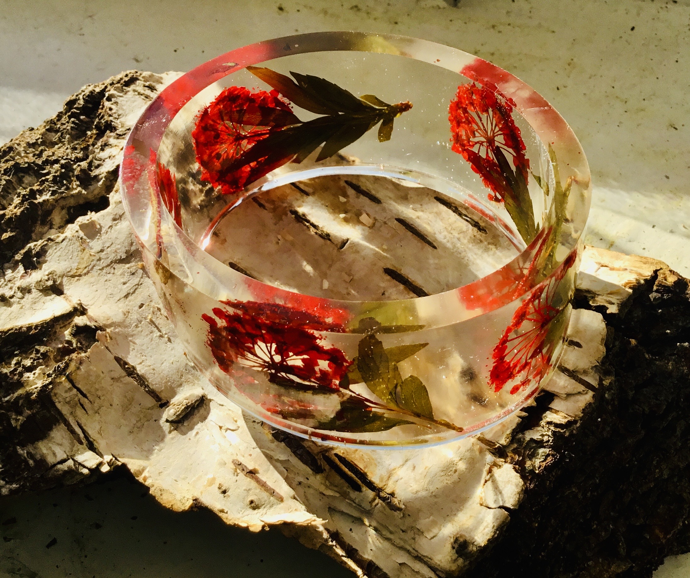 Narcissus Spiraea Real Flower Bangle and necklace set, mini dry red flowers jewelry set,handmade resin bangles,