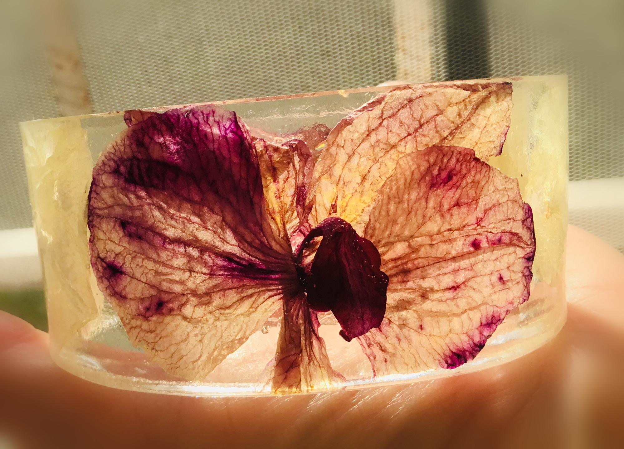 This orchid bangle bracelet is made with real dry pressed pink and white orchid flowers in high quality epoxy resin,unique handmade jewellery gift for her.