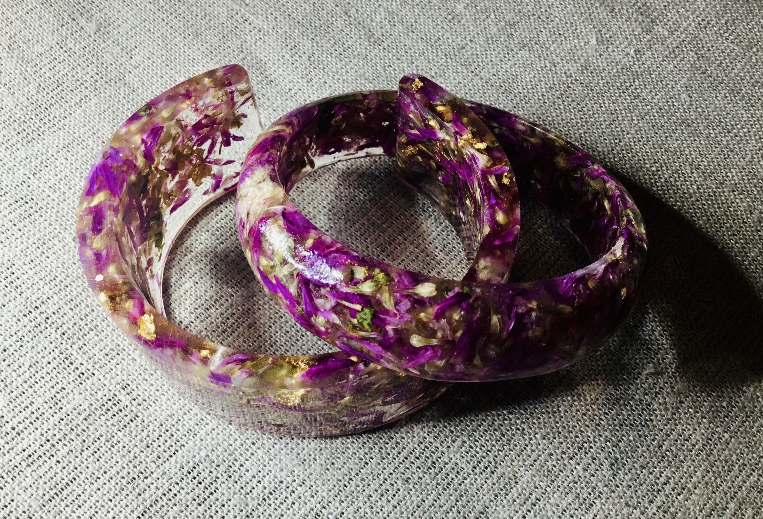 Pink rose colour petals and golden foil resin bangles,set of 2 bangles,customized bracelets,cuff floral bangle,unique handmade jewelry gifts for her