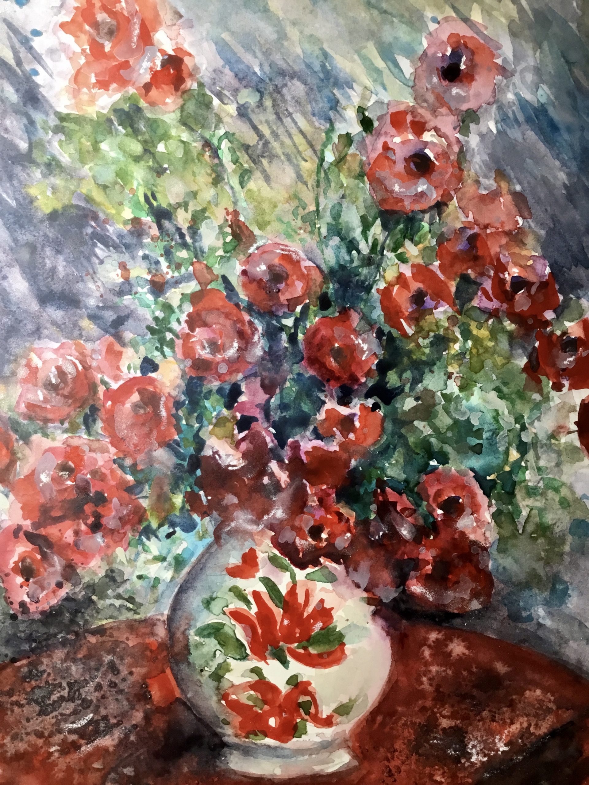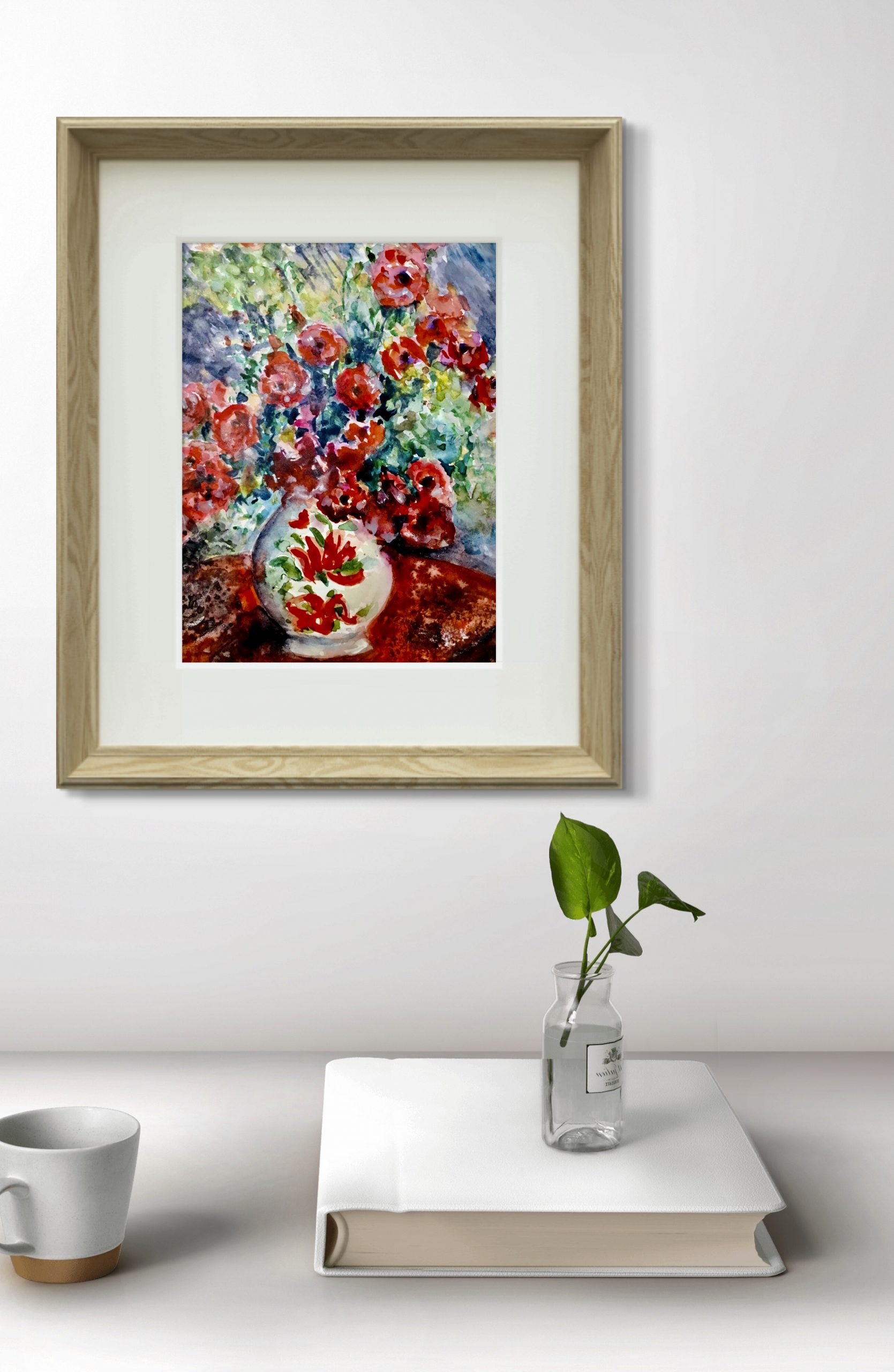 Red flowers in a vase painting