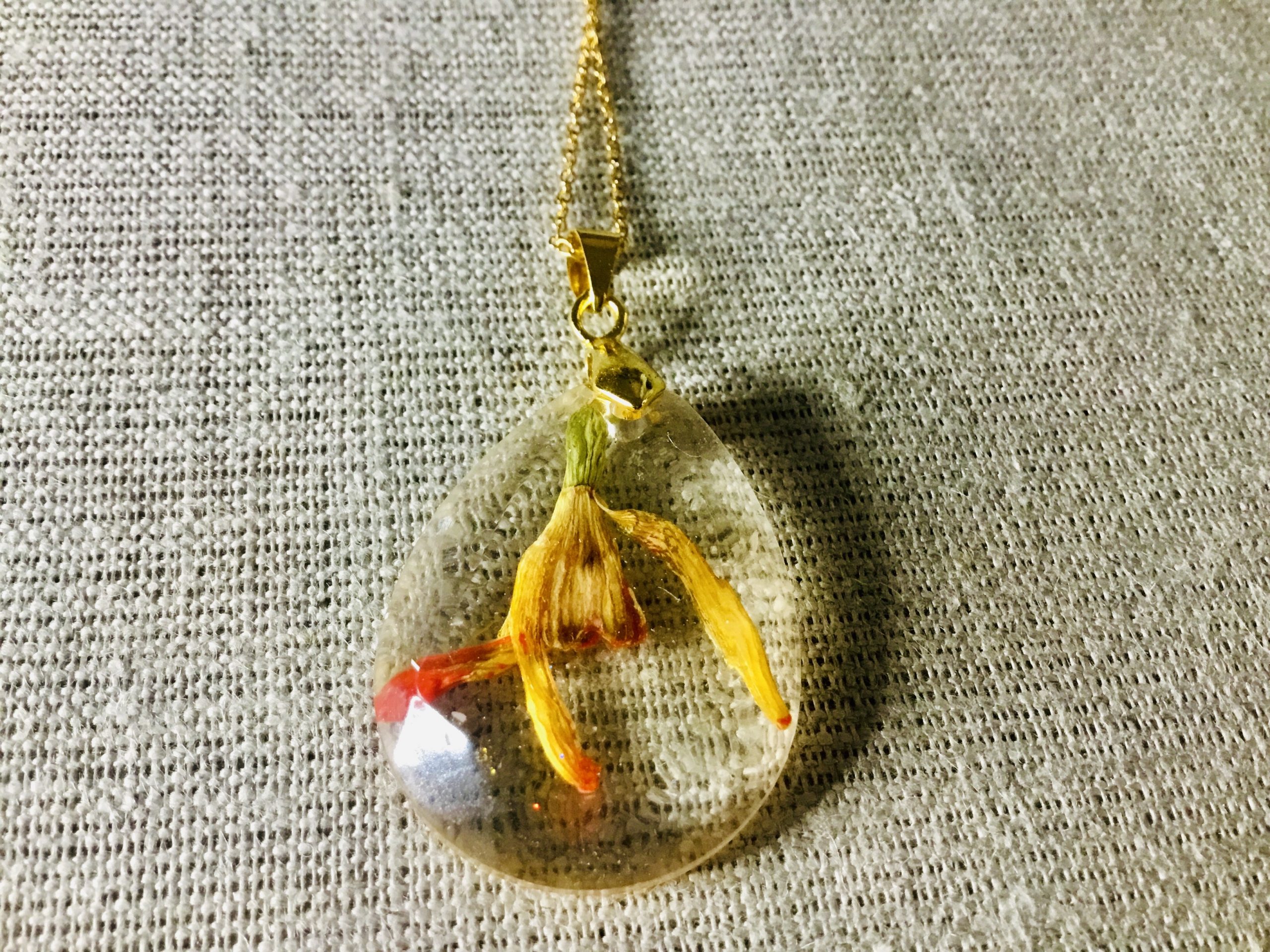 This jewelry set is made with real dry pressed snowdrop flowers coloured in pink, consists of the earrings and 2 necklaces.
