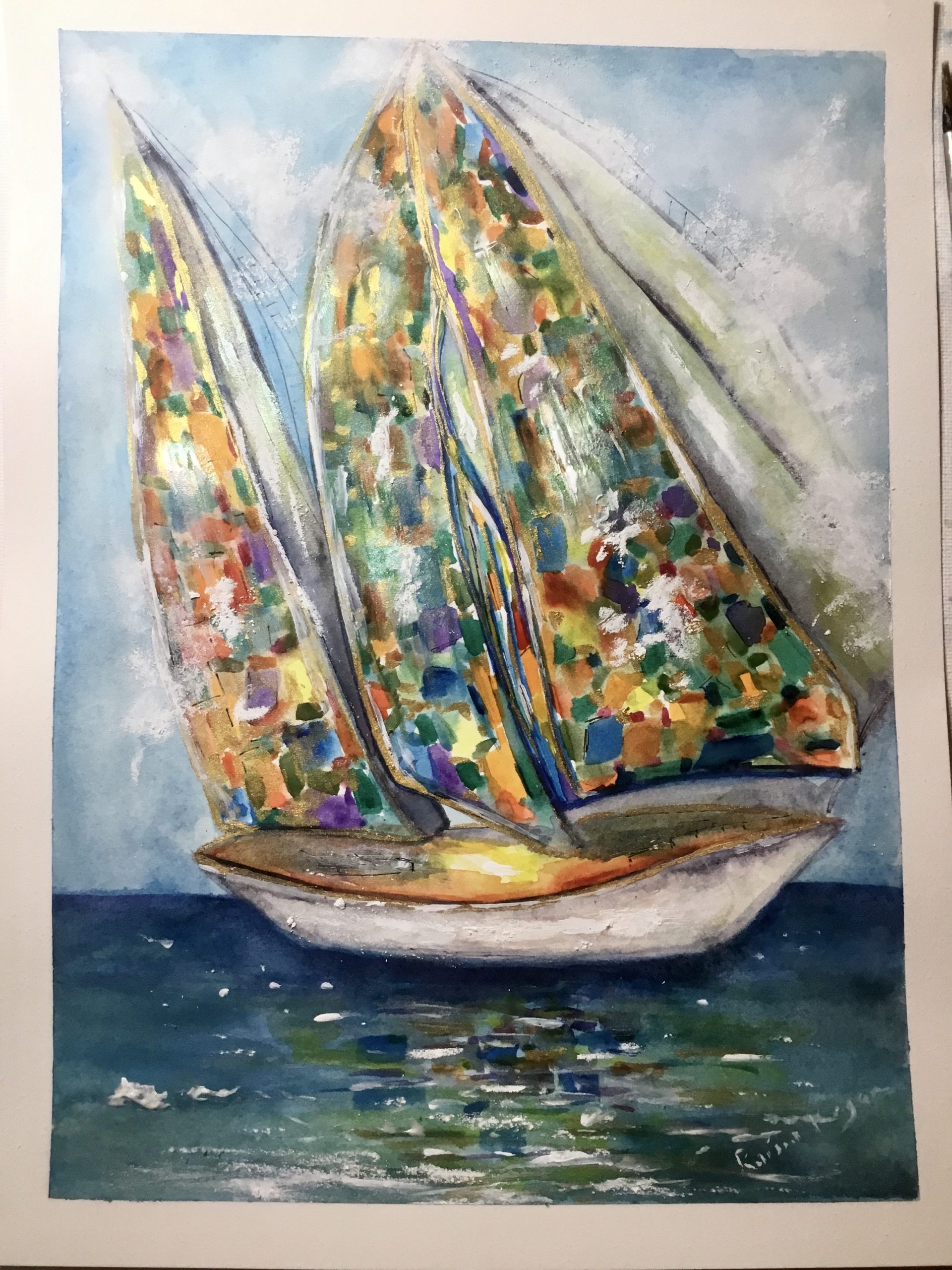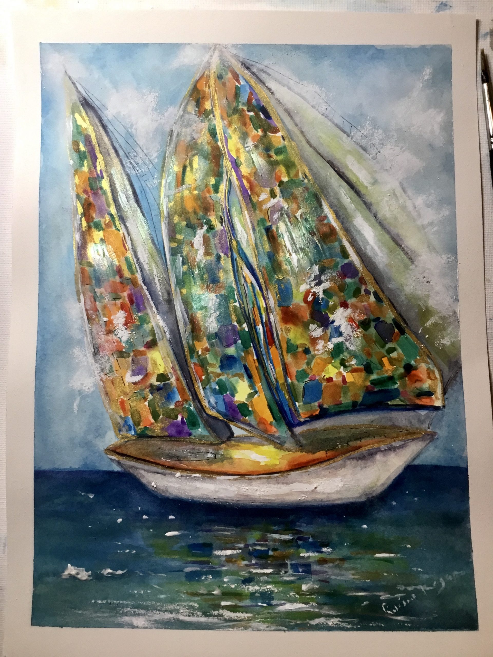 Original watercolour colourful mix media painting on high quality watercolour 350 g paper.