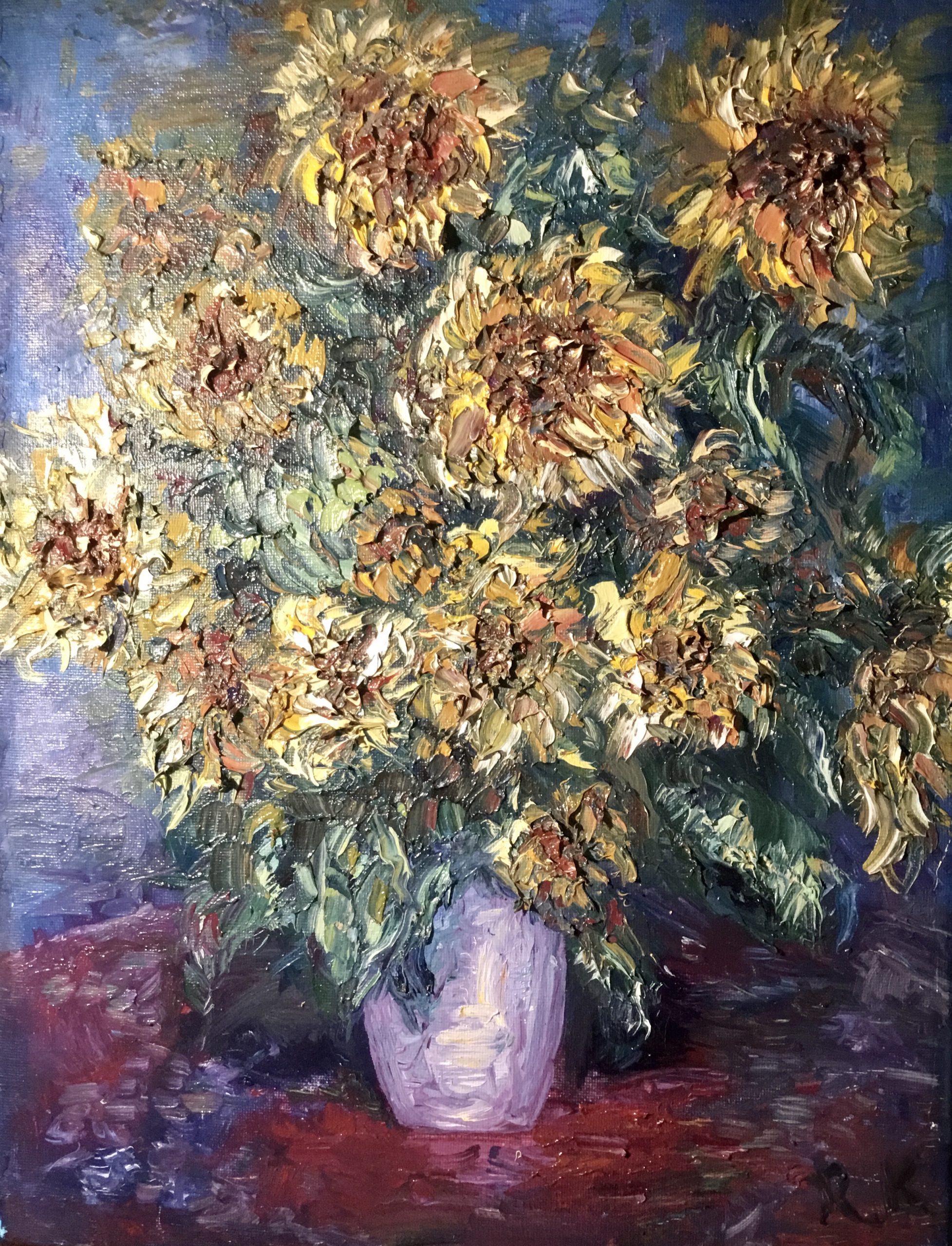 Sunflowers original textured impasto impressionistic oil painting on 3 d canvas.