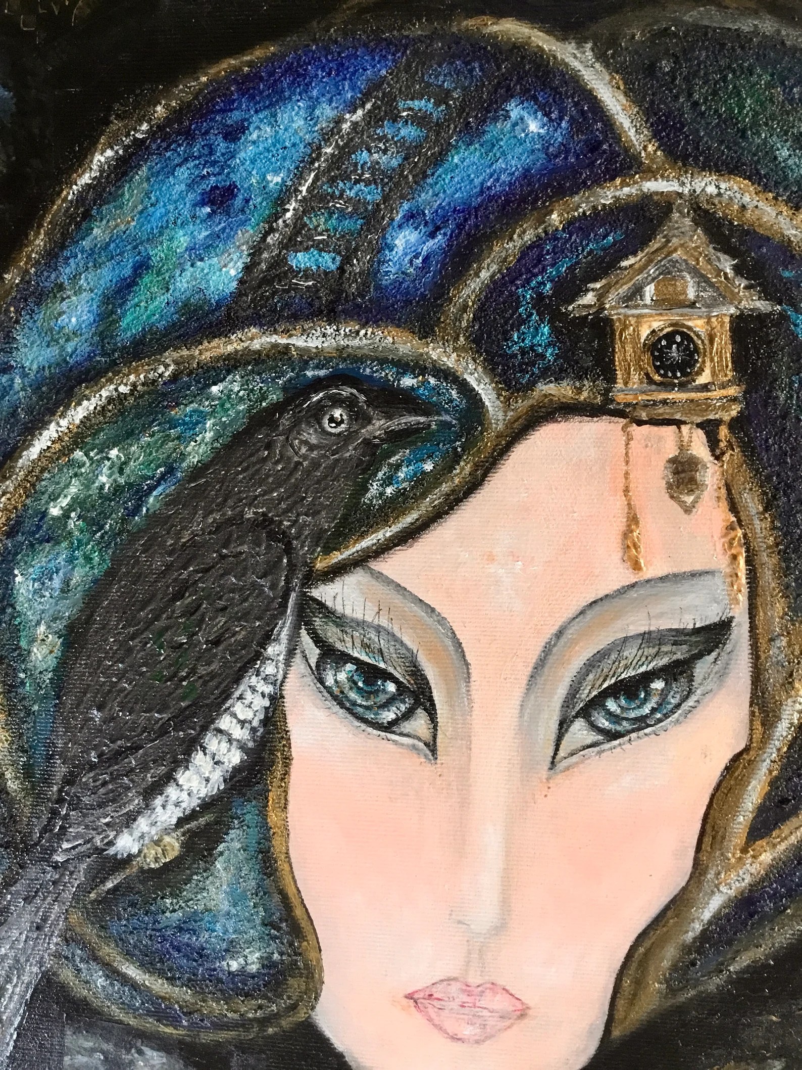 “Timeless Aunt Emmy” – Fantasy Portrait with Magpie & Watches