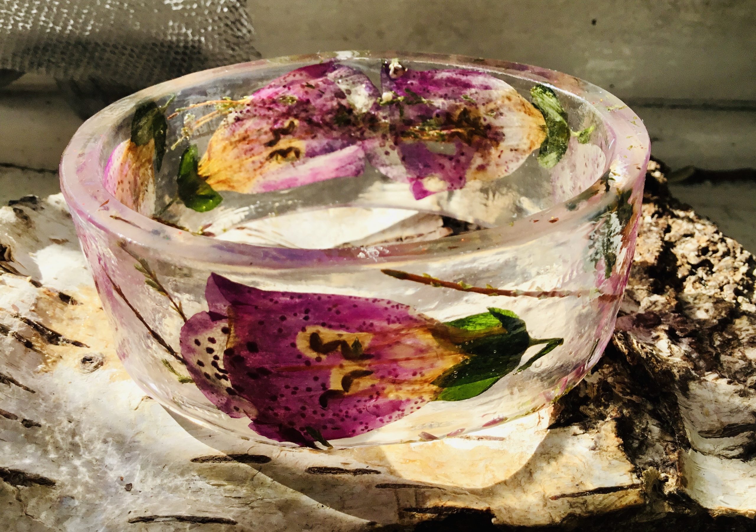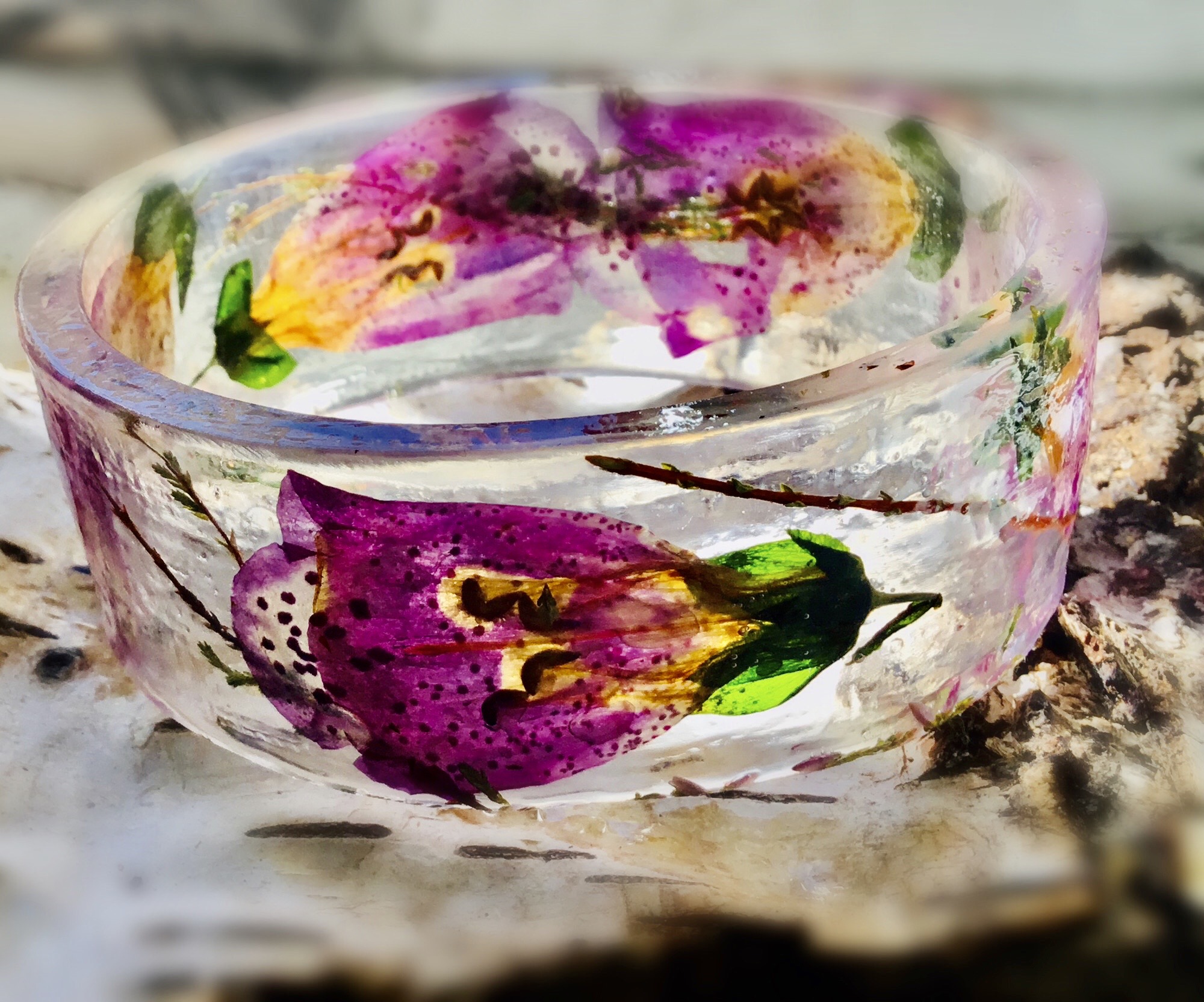 Whimsical Foxglove Resin Bangle – Nature’s Beauty, Forever Preserved